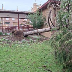 Binéfar sufre una segunda tormenta torrencial en ocho días que deja árboles arrancados y locales anegados
