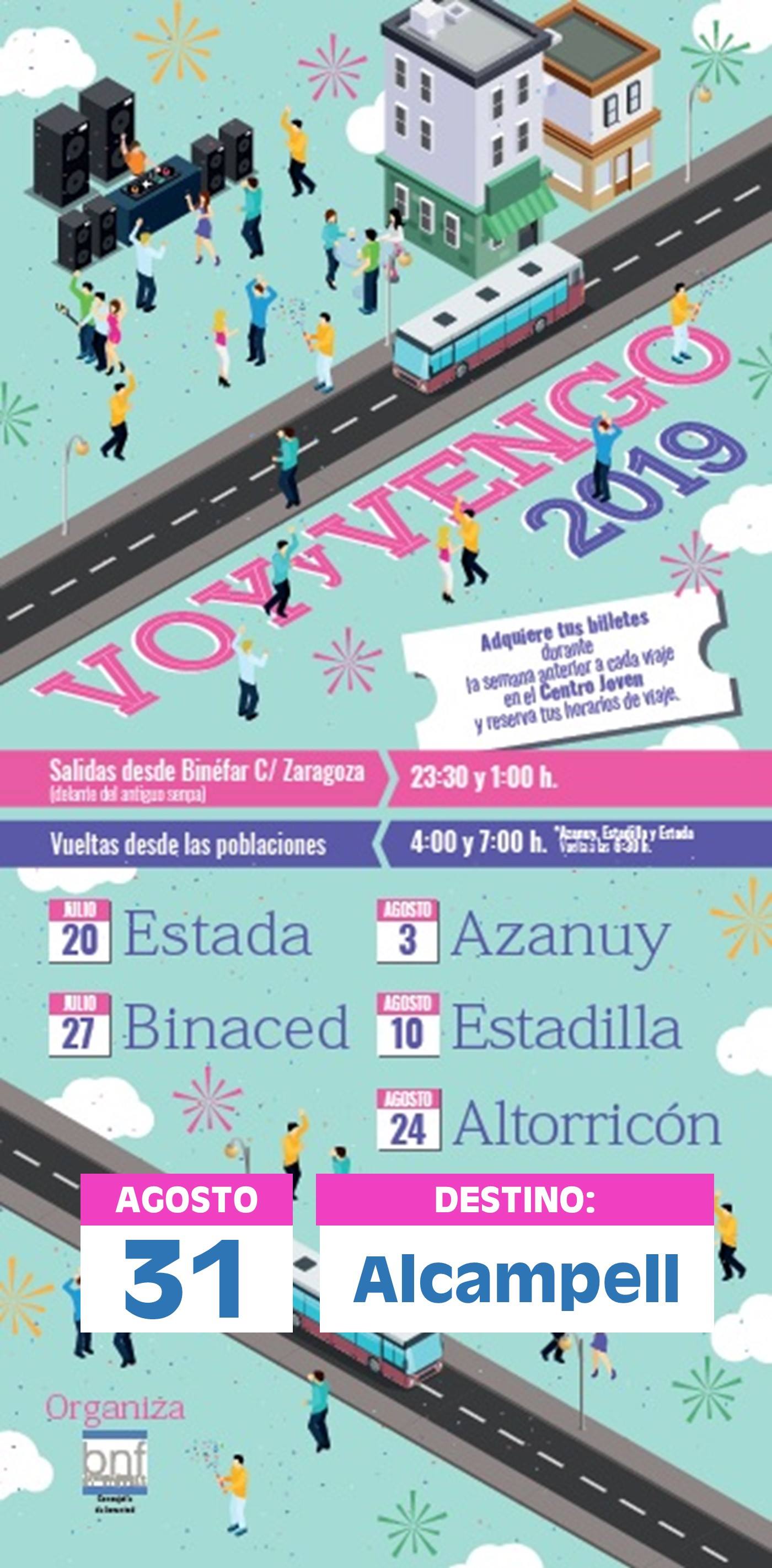 La concejalía de Juventud del Ayuntamiento de Binéfar pone a disposición de los jóvenes un nuevo destino para este mes de agosto, Alcampell. El servicio se realizará este próximo sábado 31 de agosto. Hablamos con la Concejal de Juventud, Teresa Pallás.